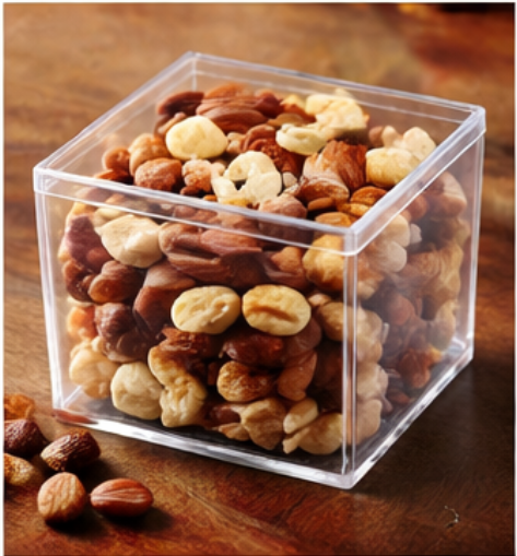 Made from food-grade plastic materials, the cube box complies with FDA and LFGB standards, ensuring safe contact with food products such as sweets, nuts, and snacks.